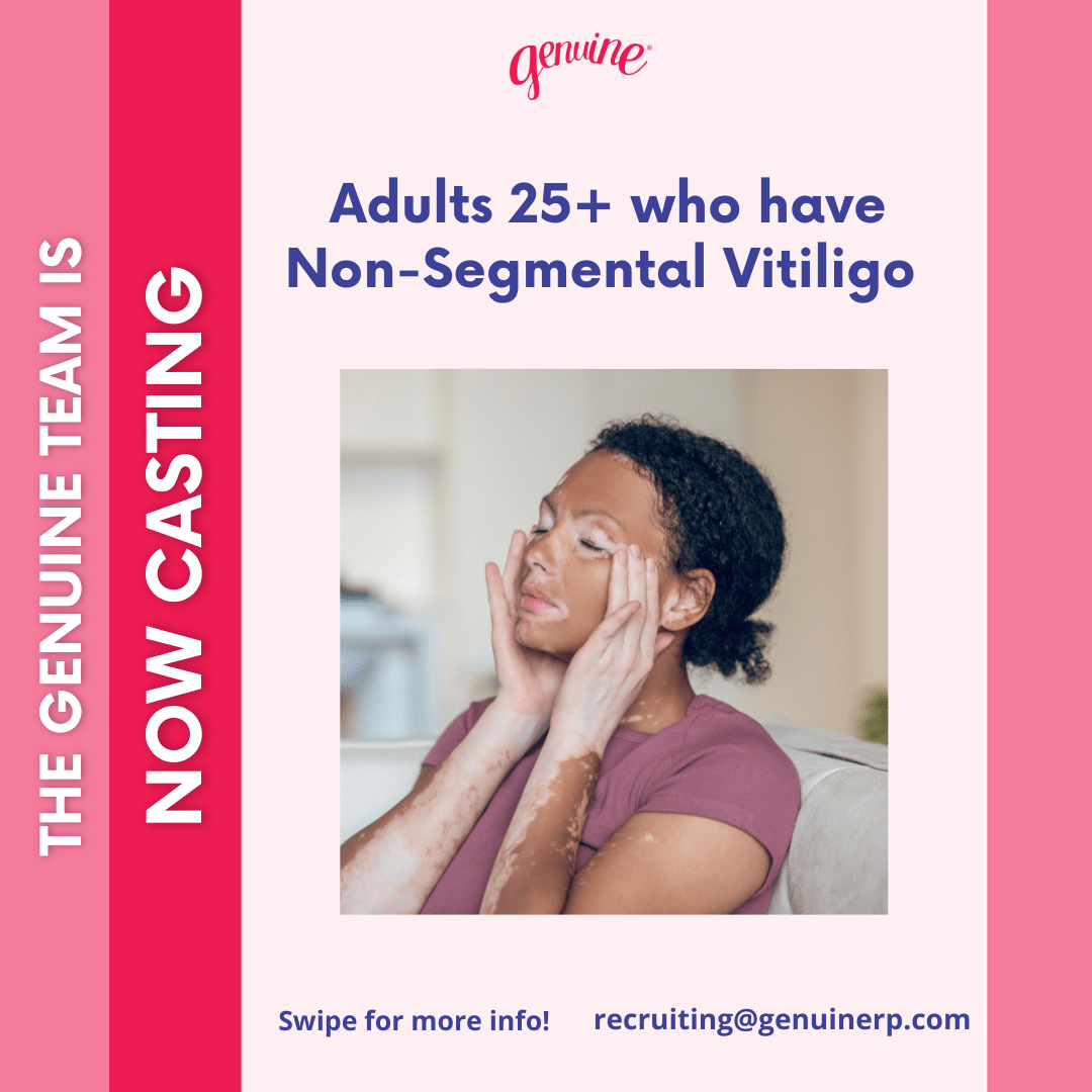 GENUINE is looking for Adults 25+ with Non-Segmental Vitiligo for an on camera group conversation discussing their experiences and perspectives on Vitiligo.